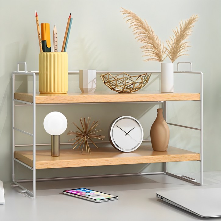 디모어 다용도 책상정리 미니 우드 선반, 원목 화이트, 2단