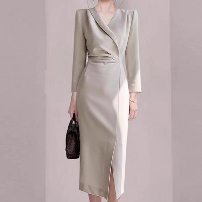 JQS 고급 랩스타일 H라인 빅사이즈 XL 원피스 단정한 오피스룩 하객룩 모임룩 1368