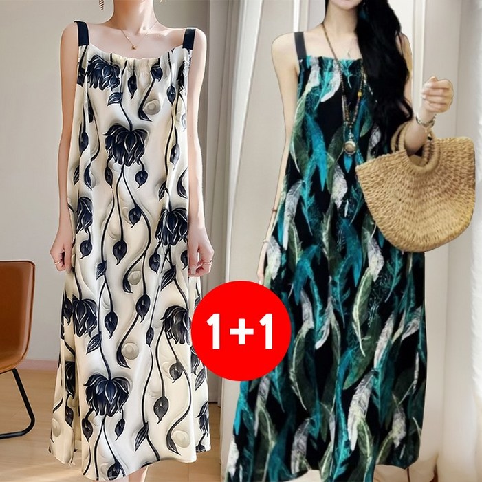 마쿠쿠 11 세트 곱창 밴딩 나시 민소매 프린팅 플라워 플로럴 여성 쉬폰 원피스 휴양지 바캉스