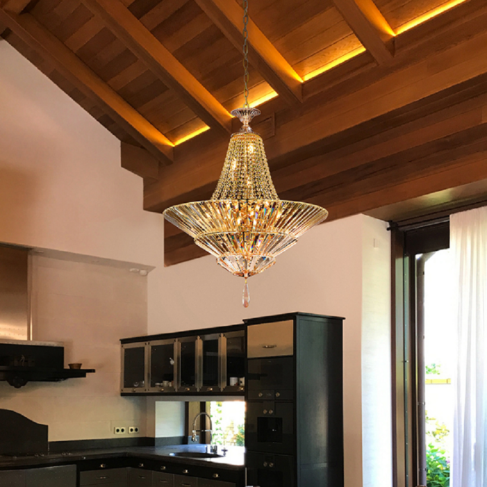 LED 12등 18등 크리스탈 펜던트 조명 고급 샹들리에 식탁 인테리어 골드 프레임