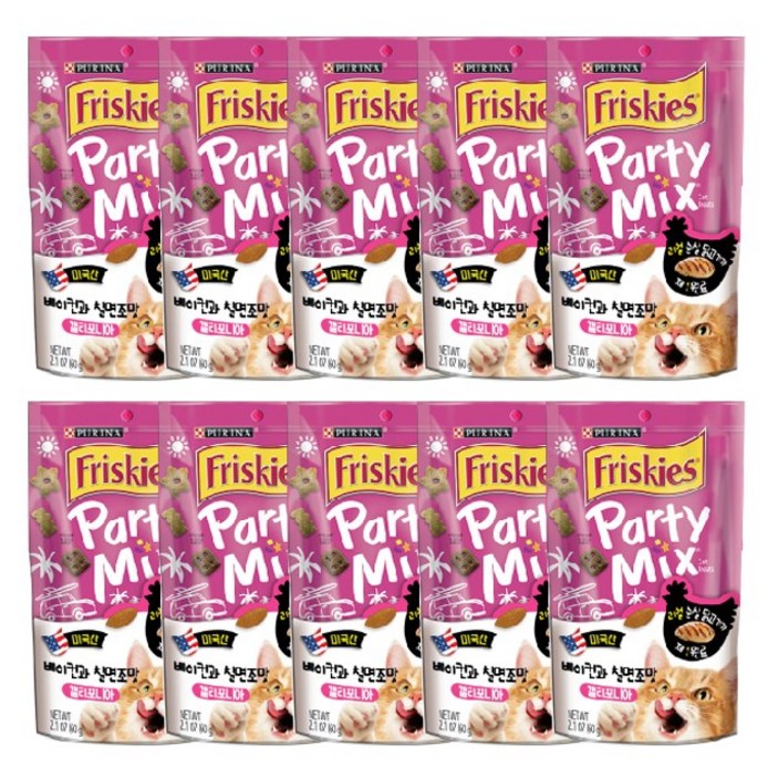 퓨리나 파티믹스 캘리포니아리얼치킨베이컨과 칠면조 맛60g , 10개, 60g