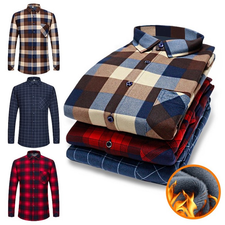 비텐 남성겨울남방 남자 체크남방 구김없는 따뜻한 긴팔 기모셔츠