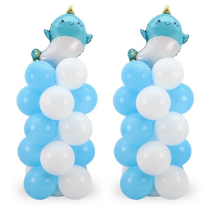 파티짱 여름 풍선 기둥 스탠드 세트 장식, 2개, 귀여운고래블루