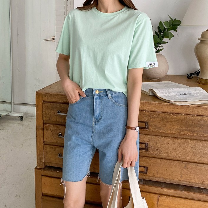 린다샵 여성용 통기성 패치스 라운드넥 소매 해피 패치 반팔 티셔츠 cpt14618k42