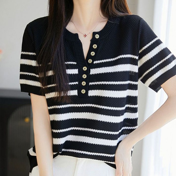 39H4065 자라여자반팔니트 스트라이프 펀칭 2756007