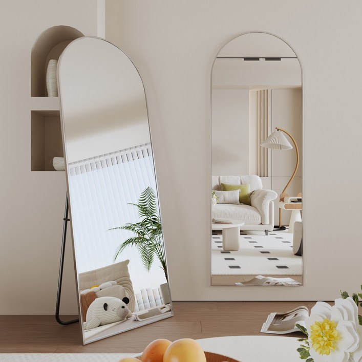 뷰티피크 아치형 전신거울 3in1 스탠드 벽걸이 거치형 강화안전유리 440×1470, 실버