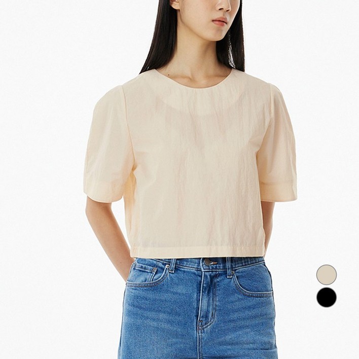 JAJU자주 여성용 사각사각 크롭 반팔 블라우스