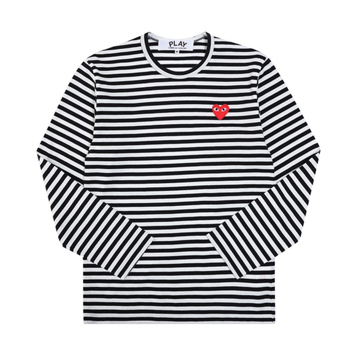 꼼데가르송 P1T164 1 AXT164051 1 PLAY 플레이 레드 하트 와펜 스트라이프 남성 긴팔티