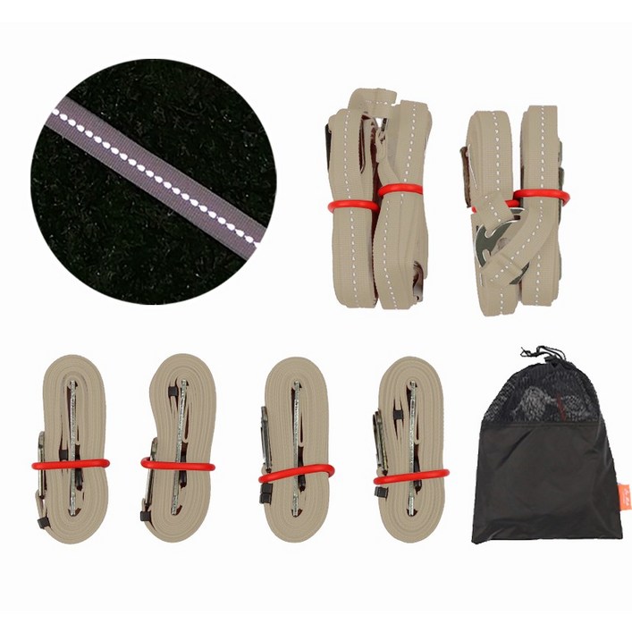 리메이드 빛 반사 타프 웨빙 스트랩 메인2p 사이드4p 파우치 세트, 베이지