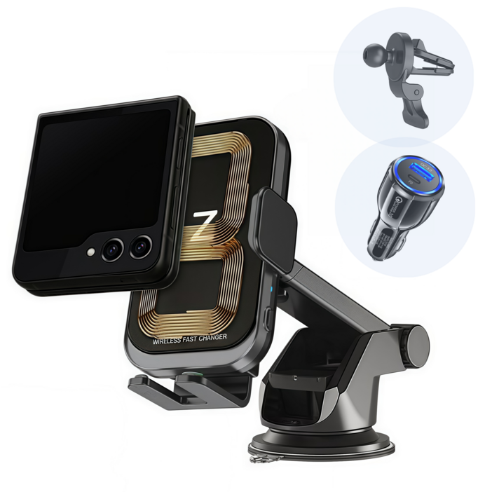 Z 차량용 고속 무선충전 홀더 거치대 15W z플립7 적합, 블랙
