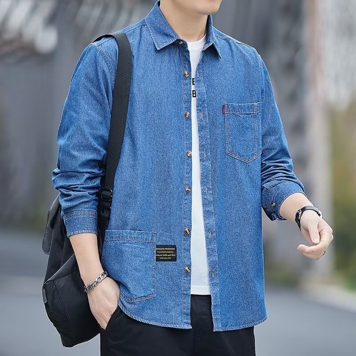 봄가을 신상 순면 데님 셔츠 남성 긴팔 면 셔츠 캐주얼 재킷 루즈핏