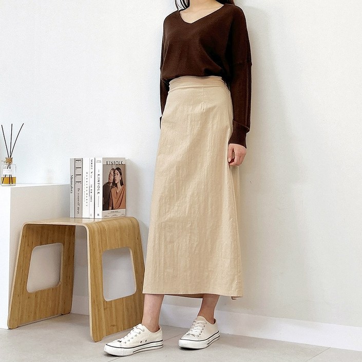 대니 밴딩 스커트 미디롱 2기장 빅사이즈 S3XL 뒷밴딩뒷트임 여성 H라인 스커트 스판치마 면 봄 여름 가을 하객룩 캐쥬얼