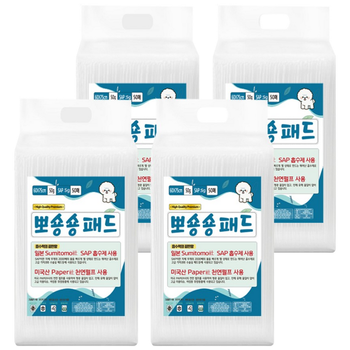 강아지 배변패드 고흡수 고중량 두꺼운 패드 대형 매트, 4개, 50개입