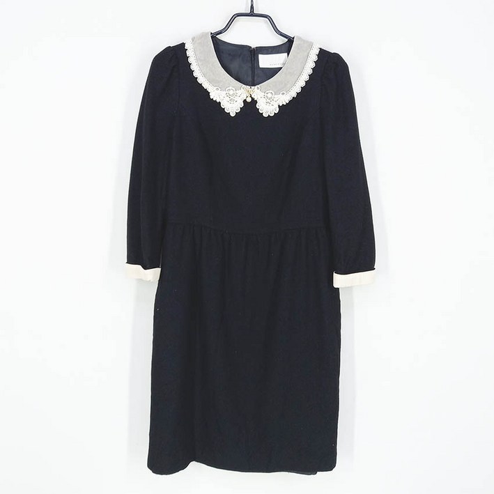 빈티지다온 레니본 7부소매 얇은모직 간절기 미니원피스 블랙82