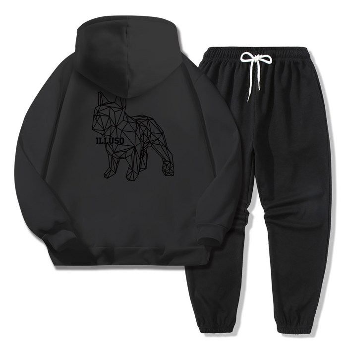 일루소 남녀공용 소프트 특양면 블랙도그 후드티 밑밴딩 조거 트레이닝복 세트