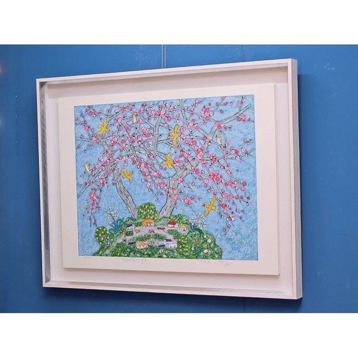 이왈종 제주생활의 중도 Blue Sky Village 원목 입체액자 거실그림